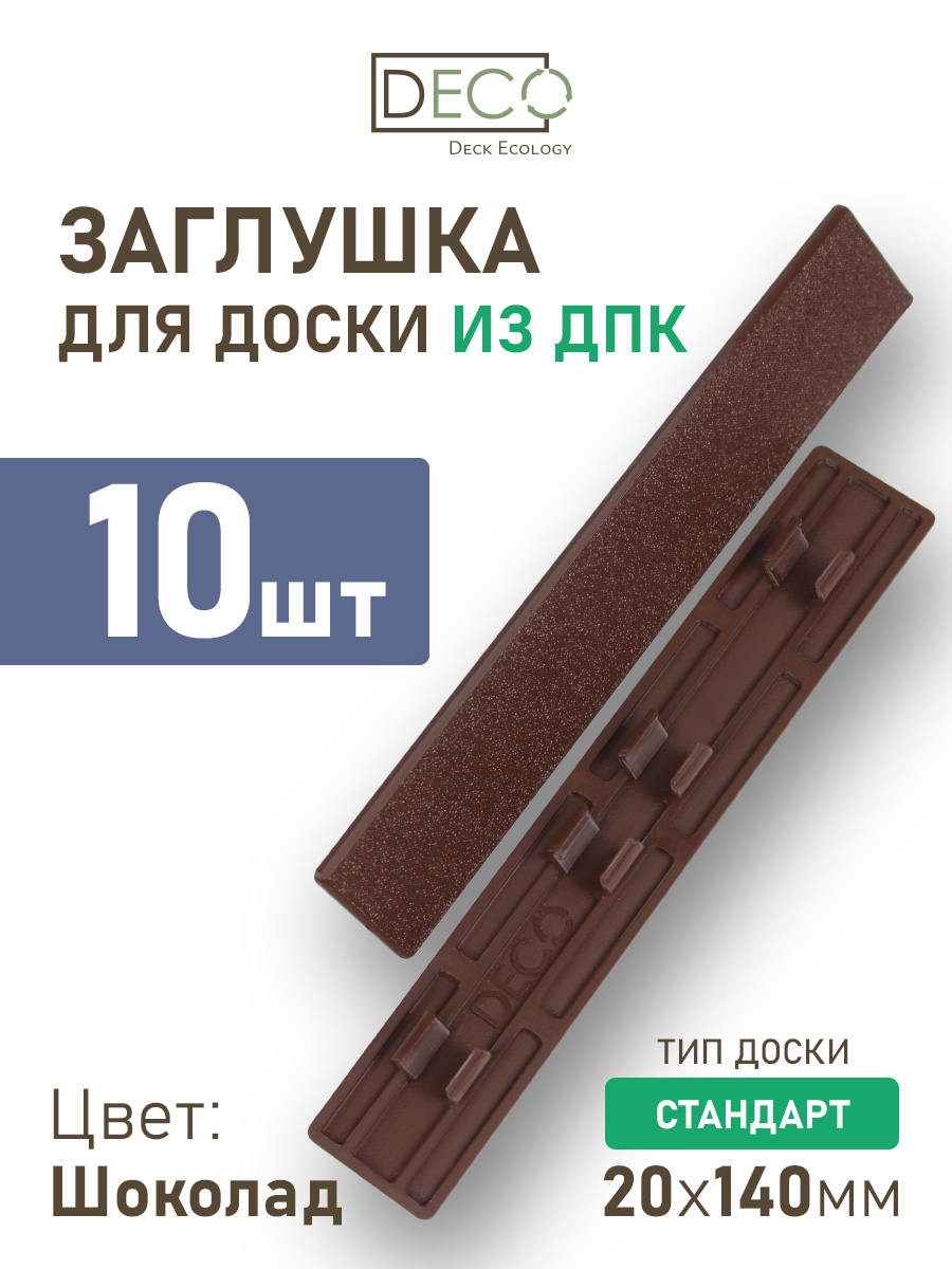 Технические характеристики Комплект пластиковых заглушек для террасной доски Стандарт из ДПК, цвет Шоколад, 20 шт